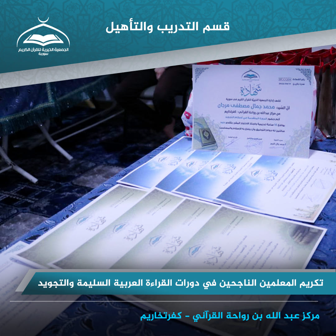 إحدى الجمعيّاتِ المتخصّصةِ والرائدَةِ في العملِ القرآنيِّ والمسجديِّ في المناطقِ المحرَّرةِ مِن سوريّةَ والتي تسعَى إلى ربطِ المجتمعِ بالقرآنِ الكريمِ عِلماً وعَملاً ..